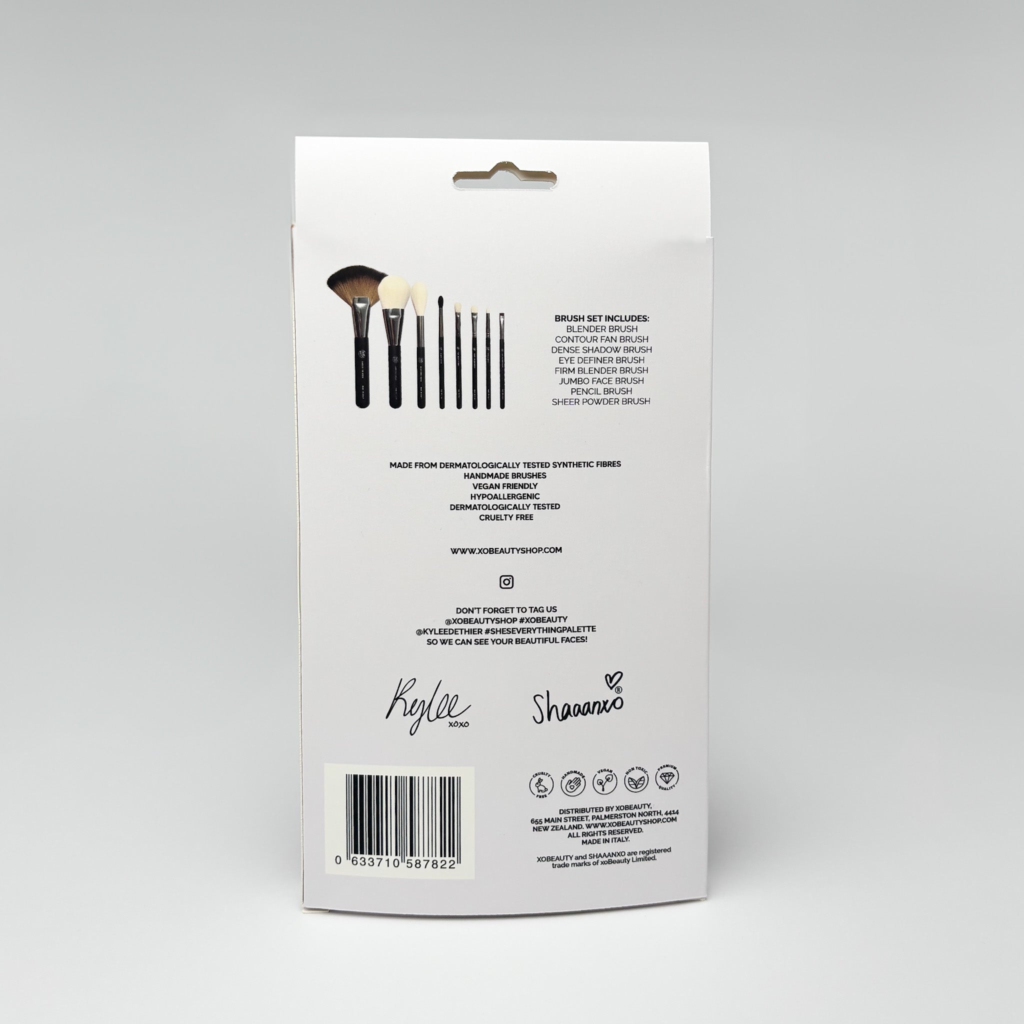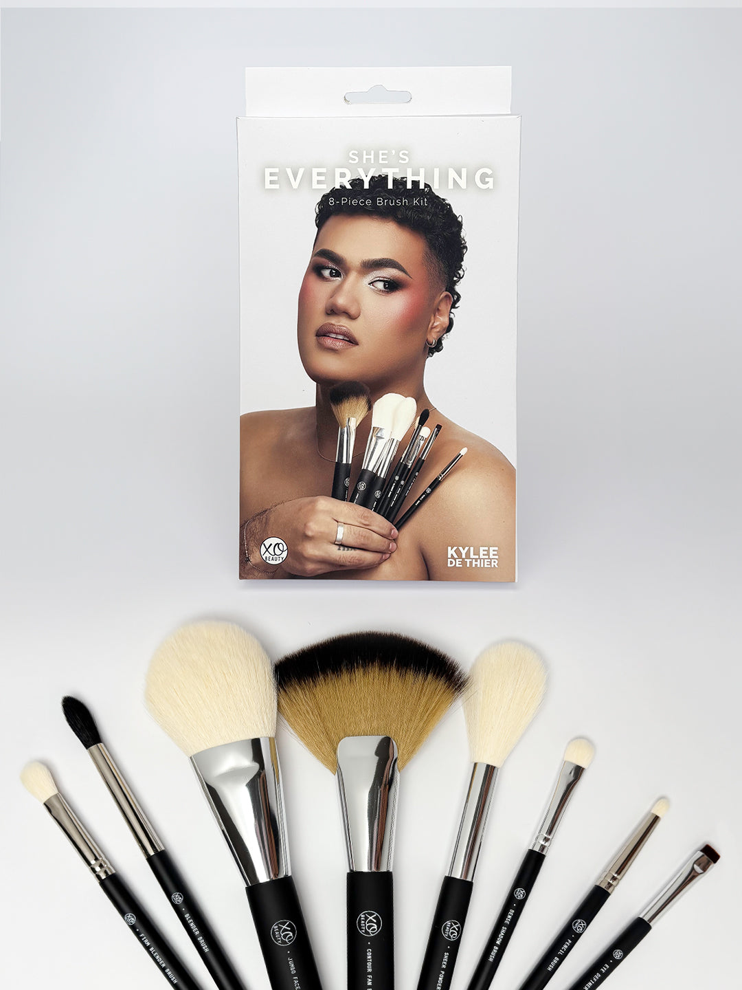 Introducing the Kylee De Thier x xoBeauty She's Everything 8 Piece Brush Kit. This brush set has been carefully curated by Kylee De Thier, with a brush for each makeup step in mind.